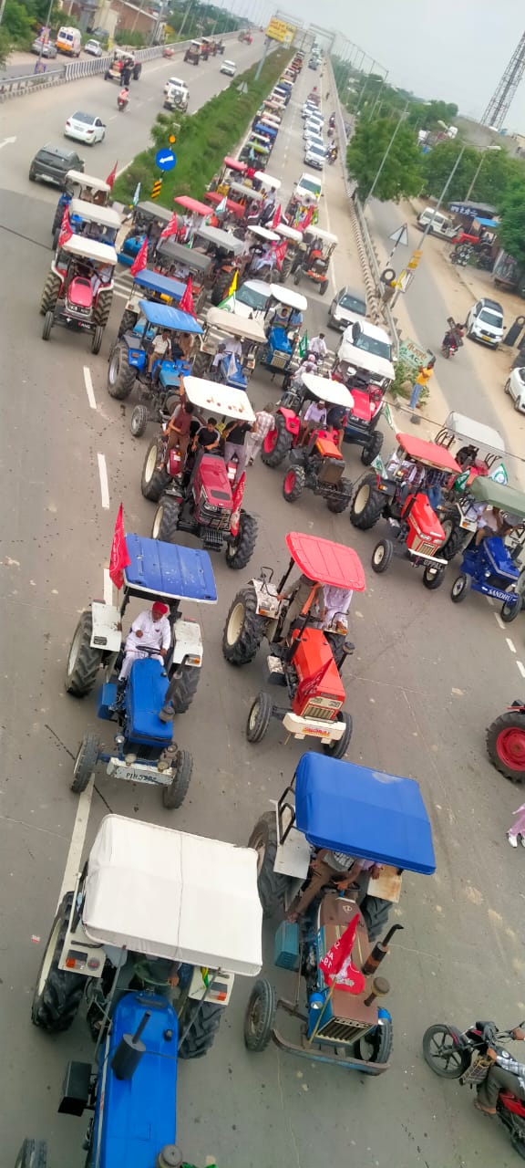 ਮੋਗਾ : ਐਸਕੇਐਮ ਵੱਲੋਂ ਲੈਂਡ ਪੋਲਿੰਗ ਰੱਦ ਕਰਾਉਣ ਲਈ ਵੱਖ-ਵੱਖ ਕਿਸਾਨ ਜਥੇਬੰਦੀਆਂ ਵੱਲੋਂ ਗਿਆ ਟਰੈਕਟਰ ਕੀਤਾ ਗਿਆ। ਇਹ ਟਰੈਕਟਰ ਮਾਰਚ ਕਰਨ ਲਈ ਕਿਸਾਨ ਪਿੰਡ ਬੁੱਗੀਪੁਰਾ ਦੇ ਗੁਰਦੁਆਰਾ ਸਾਹਿਬ ਵਿਖੇ ਇਕੱਠੇ ਹੋਏ ਅਤੇ ਬਾਅਦ ਵਿੱਚ ਸਾਰੇ ਟਰੈਕਟਰਾਂ ਅਤੇ ਗੱਡੀਆਂ ਤੇ ਬੈਠ ਕੇ ਰਵਾਨਗੀ ਕੀਤੀ ਗਈ।