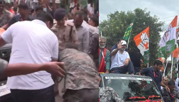 ਯਾਤਰਾ ਦੌਰਾਨ, ਨਵਾਦਾ ਵਿੱਚ ‘ਵੋਟਰ ਅਧਿਕਾਰ ਯਾਤਰਾ’ ਦੀ ਸੁਰੱਖਿਆ ਵਿੱਚ ਤਾਇਨਾਤ ਇੱਕ ਪੁਲਿਸ ਕਰਮਚਾਰੀ ਨੂੰ ਕਾਂਗਰਸ ਸੰਸਦ ਮੈਂਬਰ ਅਤੇ ਵਿਰੋਧੀ ਧਿਰ ਦੇ ਨੇਤਾ ਰਾਹੁਲ ਗਾਂਧੀ ਅਤੇ ਆਰਜੇਡੀ ਨੇਤਾ ਤੇਜਸਵੀ ਯਾਦਵ ਨੂੰ ਲੈ ਕੇ ਜਾ ਰਹੇ ਇੱਕ ਵਾਹਨ ਨੇ ਟੱਕਰ ਮਾਰ ਦਿੱਤੀ।